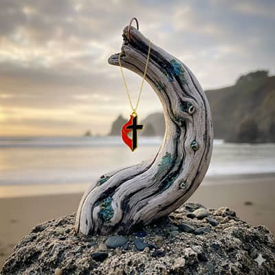 - Cross Material: Gold Plated Metal Alloy with Black & Red Enamel Fills