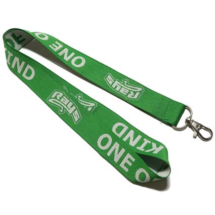 Woven Lanyards 1 Inch with 1 Color Imprint. Make your brand a part of their everyday routine with the promotional look of these 1 inch woven lanyards. They're made using a strong micro weaved material that is durable, colorful and sure to complement an embroidered imprint of your organization's name, logo and advertising message. This lanyard is available in a variety of color options with different colors on reverse sides. Price includes embroidered imprint and your choice of a j-hook, keyring, bulldog clip or lobster claw attachment. Additional attachment options and higher quantity pricing available. Lanyards measure 1 inch W x 36 inches L.