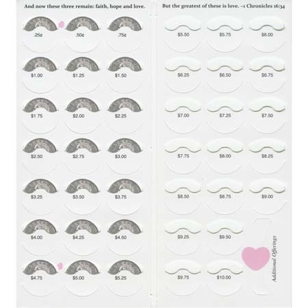 Elevate your church fundraising efforts with our $10 Sweetheart Quarter Coin Folders for Fundraising, designed to inspire generosity while featuring delightful pastel colors reminiscent of traditional conversation hearts candy. These church coin folders not only showcase uplifting Christian messages but also serve as an excellent tool for raising funds for core operations, building projects, and community development. Perfect fundraising ideas for church youth groups, each folder holds 40 quarters and includes an extra Additional Offering slot for bills or checks, making it easy to collect donations. Packaged in sets of 50, they fit seamlessly into #10 envelopes for convenient mailing, ensuring outreach to those unable to attend services. Made in the USA, these church gleaners are a charming and effective way to engage your congregation in giving.