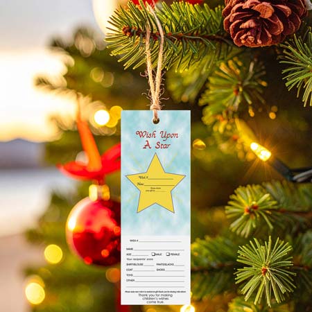 Wish Upon a Star Angel Tree Tags are a wonderful way to bring Christmas to needy children. Each Angel tag is 3 X 9 inches, printed on coated card stock, pre-perforated with a hole punched for hanging on a Christmas tree. There’s places for information about the person gifts go to, including size, sex and what is needed. The back of the tree tag is blank. Can be used by any non-profit, business, organization or church. Comes in a package of 100. Designed to be hung on Christmas tree in November and early December. Christmas angel tree giving tags are an exciting way to give to children who need it the most.