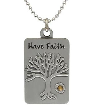 The Have Faith Necklace is a beautifully crafted piece of faith jewelry that embodies inspiration and belief. Featuring a 1 1/8 inch tall, two-sided pewter pendant, one side displays the uplifting words "Have Faith" alongside a detailed depiction of a mighty mustard seed tree and a real mustard seed. The reverse side elegantly quotes Matthew 17:20, emphasizing the power of faith with the message, "If you have faith as small as a mustard seed, you can say to this mountain, 'Move from here to there,' and it will move. Nothing will be impossible for you." This faith mustard seed necklace is suspended on a durable 24-inch stainless steel ball chain, making it a perfect choice for Christian gifts or personal adornment.