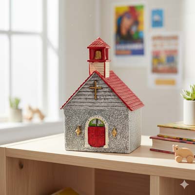 I like to teach my 4s and 5s Sunday school class about “church” so we actually have the kids pass little baskets while we sing a song about offering. We then put the money in the church so they have a visual representation of where it goes. Because of the covid situation, I had each child put their offering directly in the church without passing baskets, then used hand sanitizer. Money is so dirty! The church is smaller than I thought it would be, but it works fine, sturdy and decorative. Dollar bills will be a bit of a challenge, but we’ll make it work!