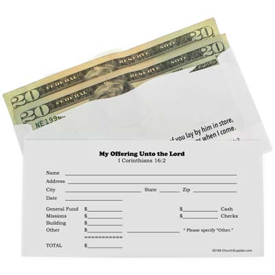 Introducing our My Offering Unto the Lord Church Offering Envelopes. Measuring 3 1/8 x 6 1/4, these my offering envelopes are designed to securely hold both dollar bills and checks. The black ink and 2-sided design make them easy to read and use. On the back, you'll find an inspiring scripture quote from 1 Corinthians 16:2 to encourage giving. The easy-open flap ensures quick access. These church contribution envelopes are a great way to support for your church and are the perfect church giving envelopes for churches looking to increase their congregation’s contribution.