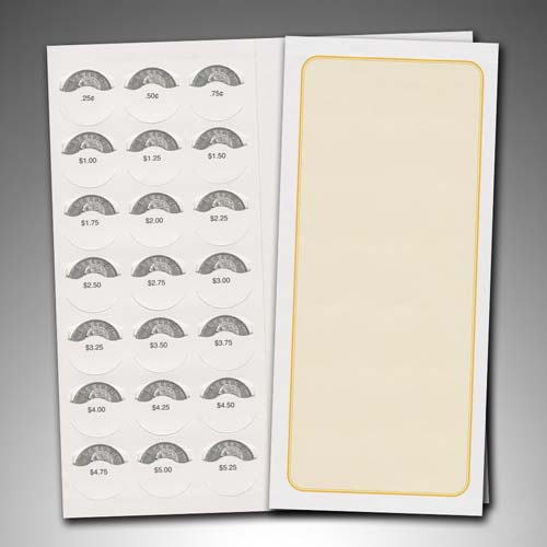 Elevate your fundraising efforts with our $5.25 Gold Blank Quarter Coin Folders, also known as quarter gleaners. Designed to hold up to $5.25 in quarters, these versatile folders are geared toward youth donations, making them perfect for non-profit organizations, scouting troops, youth sports teams, and church fundraisers. With no text inside except for the quarter amounts, you can easily customize them by printing labels with your organization’s name, logo, and fundraising details, or use them as is. Sold in a convenient package of 10, these folded gleaners fit perfectly into a #10 envelope, ensuring easy distribution. Ideal fundraising supplies for any language, denomination, or non-profit initiative.