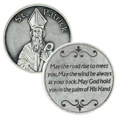 St. Patrick Coin is made in Italy and has a 1 1/8 Inch diameter. The front features a likeness of Saint Patrick, the patron saint of the Irish. The back features the traditional Irish blessing: “May the road rise to meet you, May the wind be wind be always at your back. May God hold you in the palm of His Hand.” A wonderful St coin. Ideal Irish gifts. Perfect as St Patrick's Day gifts.