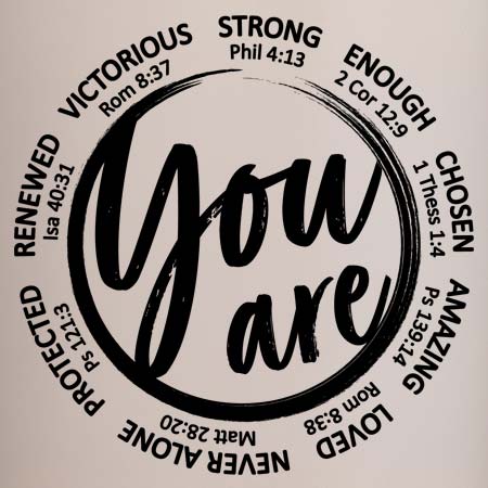 Stay refreshed while being reminded of God’s truth with the 'You Are' Bible Verses Tumbler. This beautifully designed 25oz. tumbler features a collection of uplifting and empowering scriptures that speak identity, purpose, and encouragement into your daily routine.