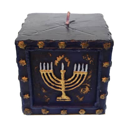 Illuminate your space with our exquisite Menorah & Star of David Candles, designed to celebrate the beauty of Judaism. This stunning dark blue square candle features a shimmering gold Star of David on two sides and a classic Menorah on the other two, making it a perfect centerpiece for any occasion. Measuring 4 inches tall and 3 inches wide, these Jewish candles are not only a delightful addition to your home decor but also make wonderful Judaism gifts for family and friends. Light up your celebrations and create lasting memories with these elegant candles! Gift boxed.