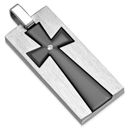 - Cross pendant Material: 316L Surgical Stainless Steel with Black Resin and a Rhinestone Accent