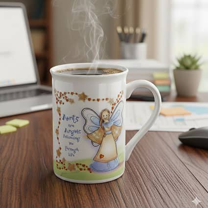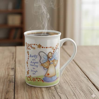 Our Aunts Are Angels Coffee Mug is a 12 oz. porcelain Aunt mug featuring a very cute illustration of an angel, and the words, “Aunts are Angels following you through life." This cool aunt mug is designed for daily use and is a thoughtful aunt gifts. Ideal for Christmas gifts for aunts, auntie gifts from nephew, auntie gifts from niece and auntie birthday gifts. The mug comes in a gift box, making it ready for gifting to a special aunt in your life.