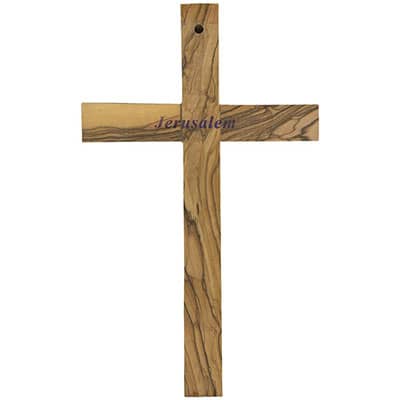 This wooden wall cross is a 8 inch tall, olive wood cross. Made in Jerusalem. Each wooden cross has beautiful wood grain and a natural finish. No two wooden wall crosses are the same. These simple, yet elegant wall crosses are the perfect christian home decor and make excellent christian gifts. The ideal christian room decor for home or office. Perfect One-of-A-Kind housewarming gifts and christian Christmas gifts. Each cross has a hole on the back for easy hanging.