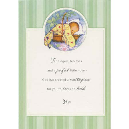 Baby Celebration of Life Congratulation Boxed Cards with Scripture and envelopes. Deluxe Heavy stock Card 7 x 5 ". Package of 12 cards and envelopes 3 each of 4 designs. Cards say blessing for (3)boy or (3)girls.