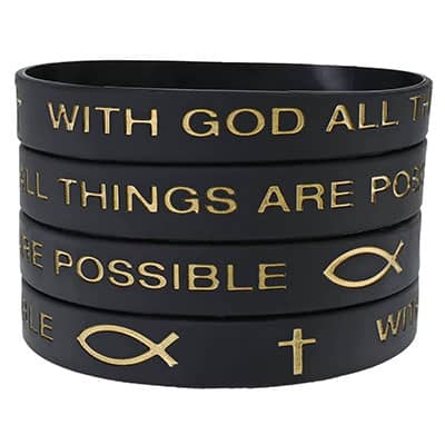 I have purchased the silicone bracelets "with GOD all things are possible".