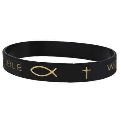 - Features: Black Silicone with Gold Text, Christian Fish & Cross