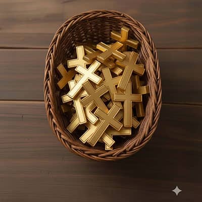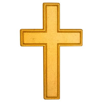 Exclusive!Flat 1 3/4 x 7/8 inch golden strong flat metal pocket / wallet cross. The backs are plain. Crosses are a bargain! Be proud of what you give. Waterproof. Lead, Cadmium, Nickel free.