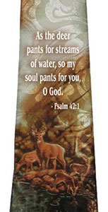 Looking for a stylish and trendy accessory to add to your wardrobe? Look no further than our hand-printed mens tie! Made from high-quality jacquard polyester, this tie features a unique and eye-catching design that is sure to make a statement. The design features a scene with a deer, created in shades of brown, white, and green, and inspired by Psalm 42:1. Each tie is hand-printed, making it a one-of-a-kind piece that is perfect for any occasion, whether it be a formal event or a casual night out. With its comfortable and durable construction, this tie is designed to last, ensuring that you’ll be able to wear it for years to come. In the event it gets dirty, wrinkled or creased, you can handwash it, and iron on low heat very carefully to avoid scorching. Each tie measures 4 inches at its widest point, and 57 inches long.