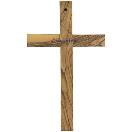 This wooden wall cross is a 10 inch tall, olive wood cross. Grown and hand-crafted in Jerusalem. Each large wooden cross has beautiful grains of colors and patterns. No two wooden wall crosses are the same. These simple, yet elegant wall crosses are the perfect christian home decor and make excellent christian gifts. The ideal christian room decor for home or office. Perfect One-of-A-Kind housewarming gifts and christian Christmas gifts. Each cross has a hole on the back for easy hanging.