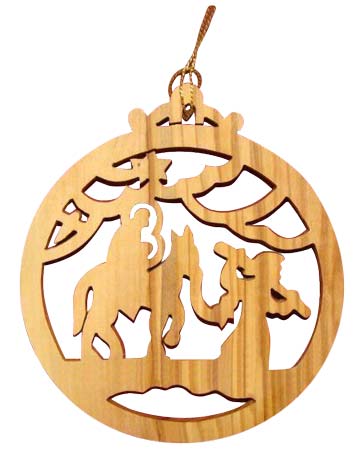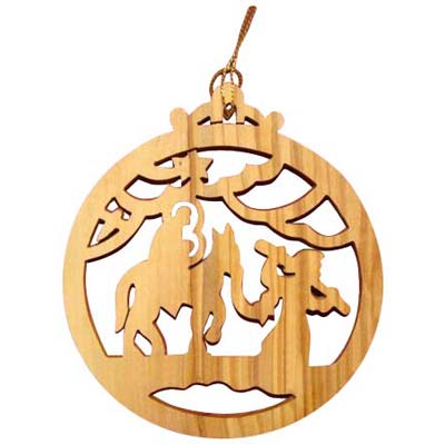 Elevate your holiday decor with our exquisite wooden ornament featuring a beautifully detailed scene of Mary and Joseph on their journey to Bethlehem. Crafted from unique olive wood in Bethlehem, each piece measures 3 1/2 inches wide by 3 3/4 inches tall, showcasing stunning wood grain that makes every ornament one of a kind. These wooden Christmas tree decorations not only add a touch of elegance to your Christmas tree but also make heartfelt Christmas gifts that will be cherished for years to come. Complete with a gold string for easy hanging, these wood tree ornaments are a perfect way to celebrate the season!