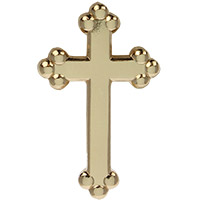Quality silver plated Christian cross lapel pin. 5/8 inches tall with a clutch back pin. Individually plastic bag. SKU: 7138